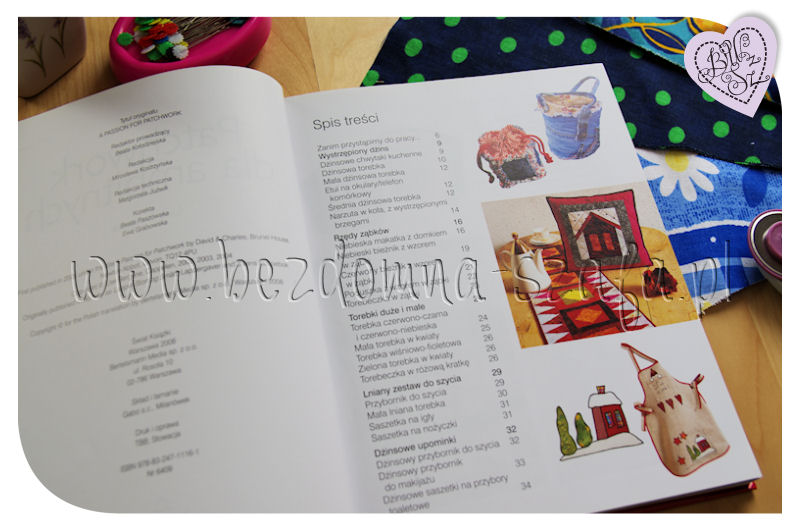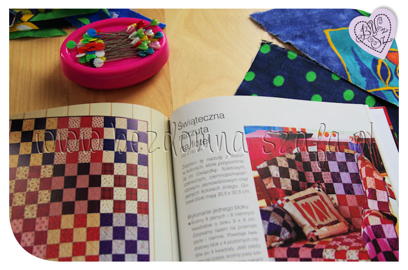 Wykoncypowałam sobie, że słowo „ambitny” zostało użyte przez tłumacza dlatego, że w publikacji nie znajdziemy przejrzystego sposobu wykonania każdej rzeczy, a jedynie słowny opis i to po tzw. łepkach, coś w stylu „użyłam jasnej tkaniny, naszyłam serduszko, przepikowałam” (to nie jest cytat z książki). No i tak… należy być nieco ambitnym, aby wg takich wskazówek zacząć swoją przygodę z patchworkiem 😉