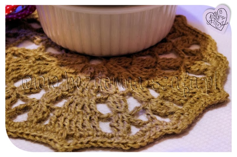 Zaczęłam dość niestandardowo, bo z jutowego sznurka i w ten sposób powstała podkładka pod gorące garnki 🙂