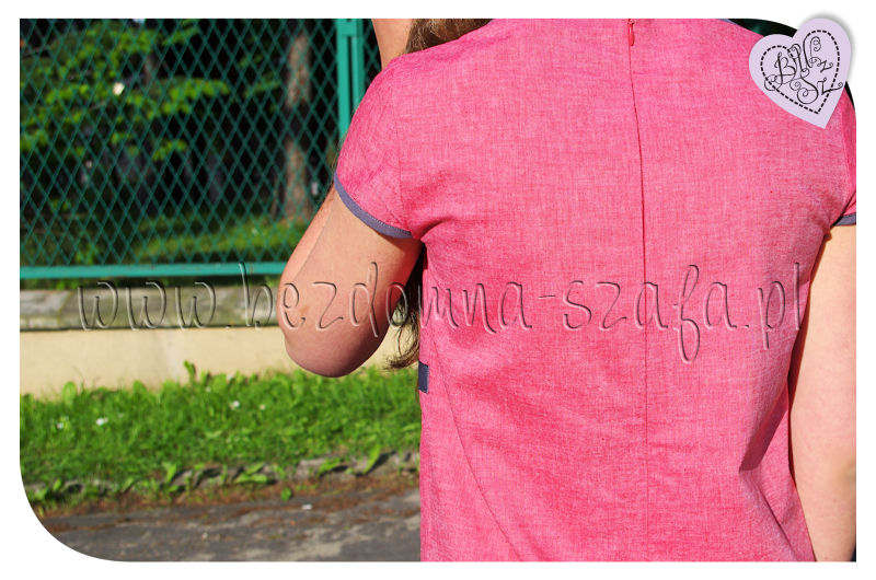 Ogólnie uszyta bez jakichkolwiek modyfikacji, czy zmian. Jedynymi odstępstwami od sugerowanej wersji, są kontrastujące lamówki dokoła dekoltu i przy rękawkach oraz na prośbę córki, „żeby było bardziej sweet”, dodałam z przodu rypsową tasiemkę z kokardką.