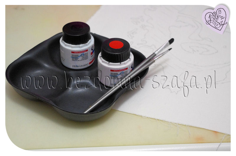 6. Maluję jak zwyczajną kolorowankę dla dzieci, wypełniając pola odpowiednimi kolorami, a następnie wg producenta farb suszymy 24h… ja jedynie przez moment na grzejniku.