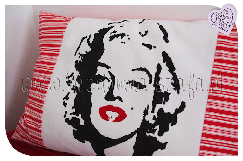 4. Tym razem zaszalałam i chciałam, żeby Marilyn Monroe miała krwistoczerwone usta! Bałam się, że to co sobie wymyśliłam, w efekcie nie będzie dobrze wyglądać, więc najpierw pokolorowałam usta w programie graficznym narzędziem „wiadro z farbą”… czerwoną farbą 🙂 MM testy przeszła pozytywnie.