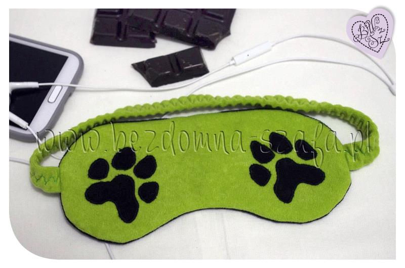 Osłonka na oczy, żeby Gosia mogła czasami zatopić się w fotelu z filiżanką gorącej kawy… ulubioną muzyką w tle, a pies patrząc na nią, niech wie, że przyłożył łapę do jej odpoczynku 😉