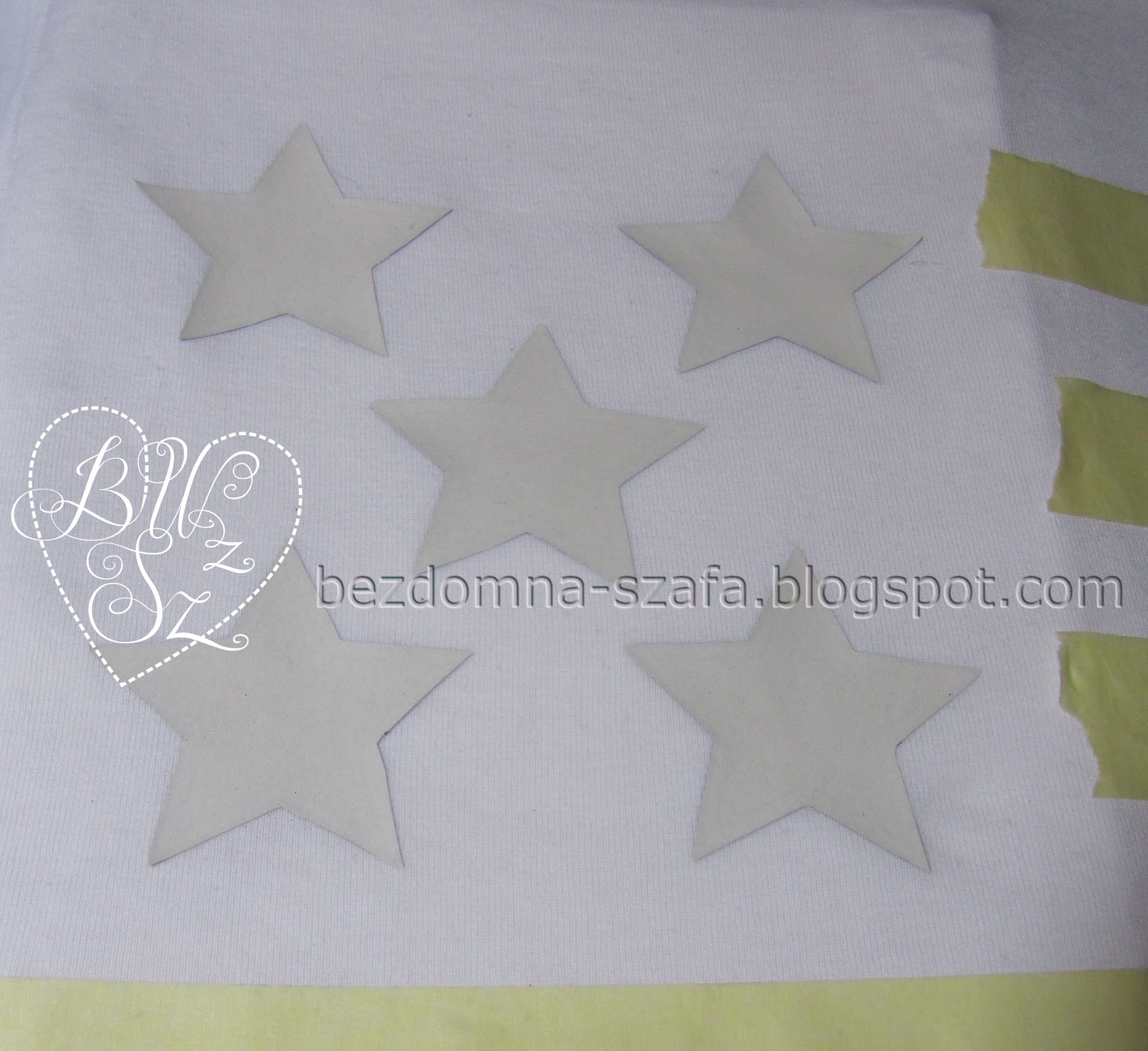 5. Gwiazdki naprasowałam drukiem do dołu. Najlepiej aby tonera było jak najmniej… w moim przypadku są to jedynie kontury, aby nie pozostały przyczernione miejsca po odklejeniu od koszulki.