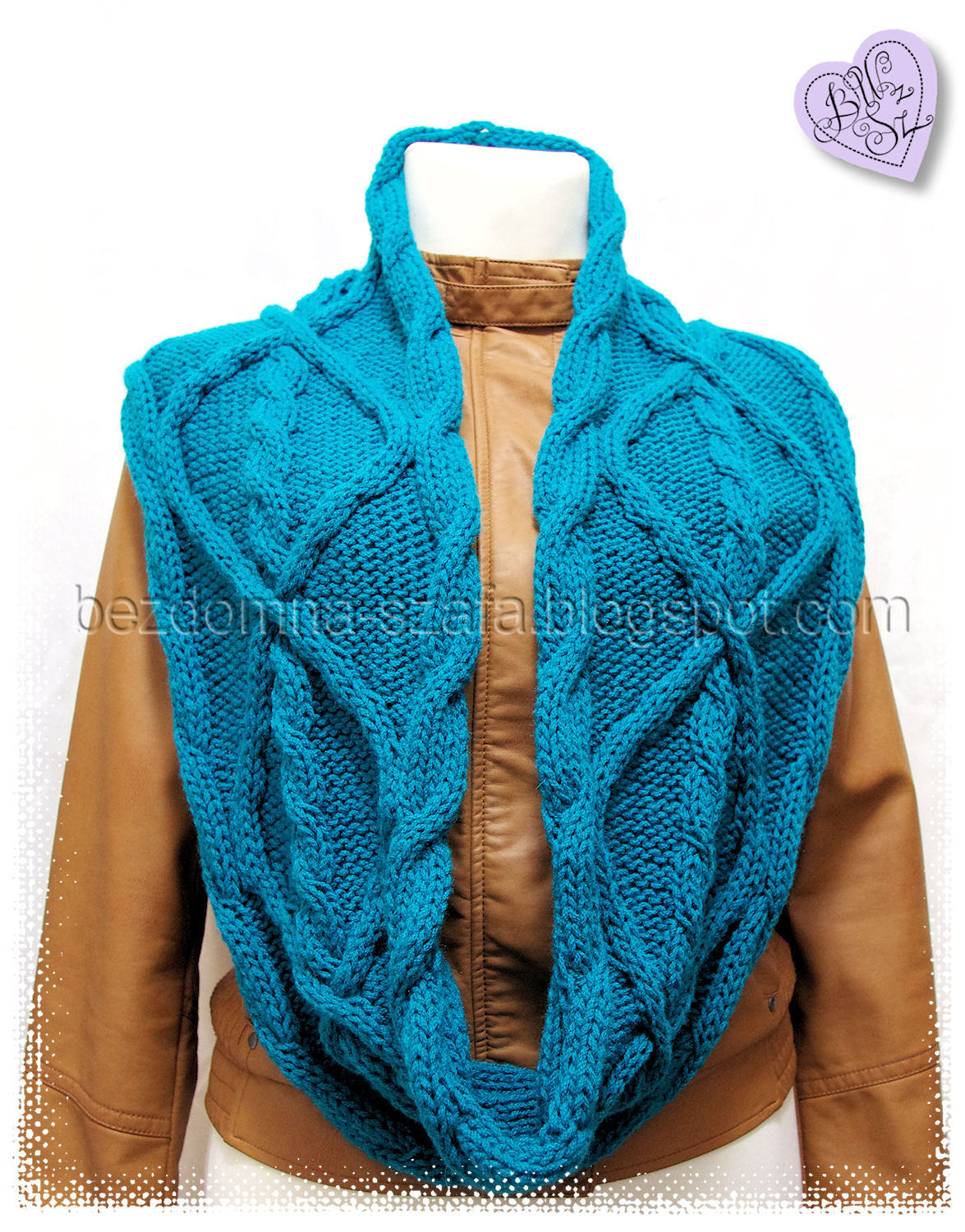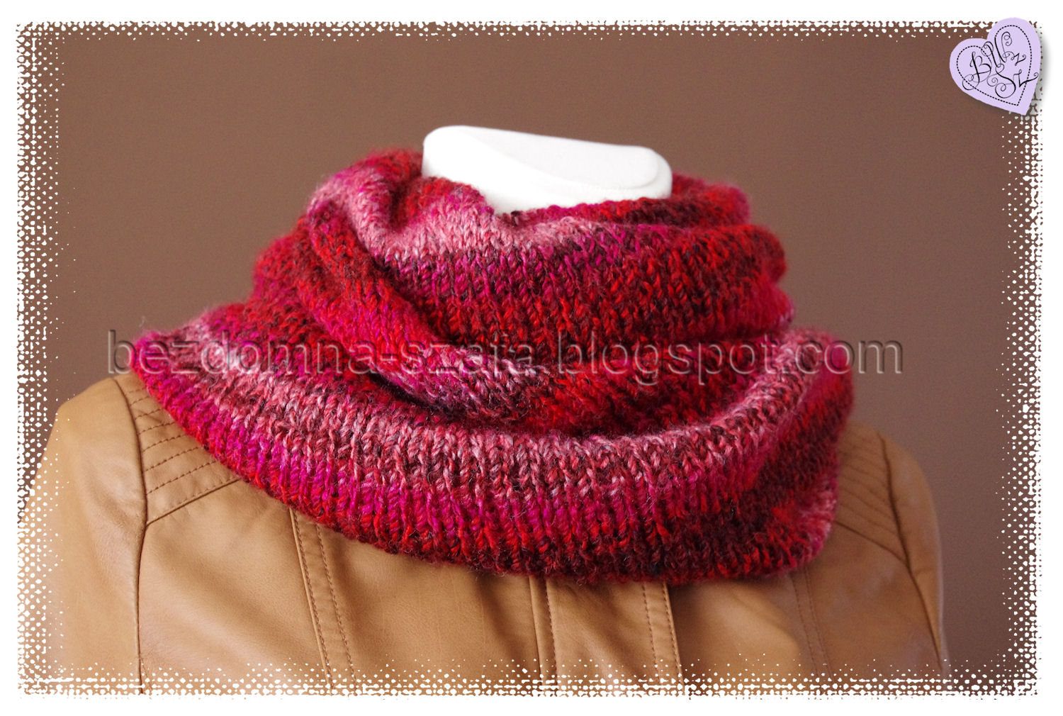 Komin sobie tak zaprojektowałam, by nie miał ani początku, ani końca… zakładało się go szybko, czyli bez kilkukrotnego owijania, ale efekt miał być taki jakby był zamotany i poskręcany.