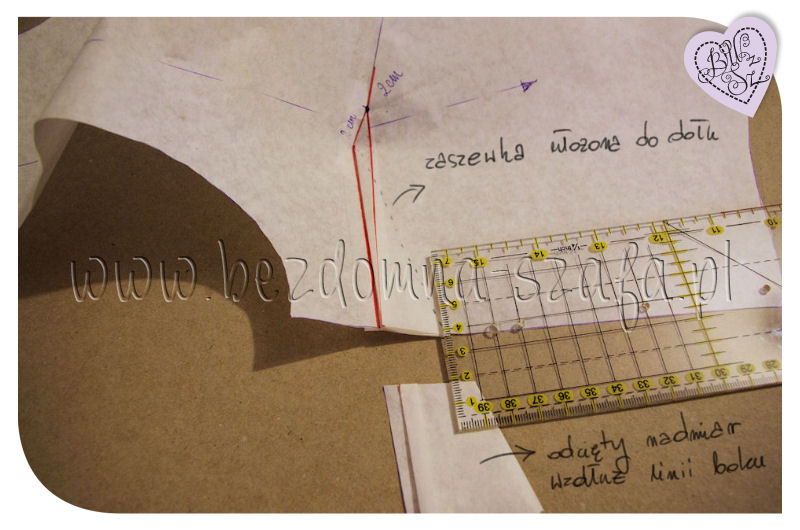 Wyżej wspomniałam o przenoszeniu zaszewki, więc osoby ciekawe jak taki manewr wykonać, zapraszam na małe rozeznanie się w temacie. Wbrew pozorom jest to dziecinnie łatwe.