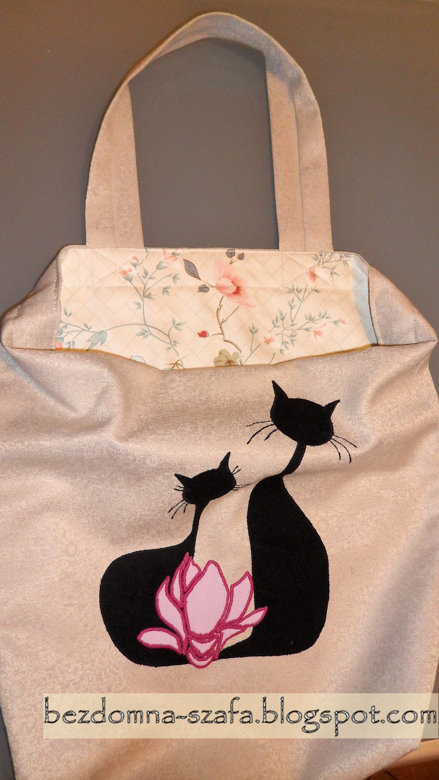 Torba piękna, podszewka bardzo pomysłowa, kociaki krasne no i magnolia jak wisienka na tym torcie :)))