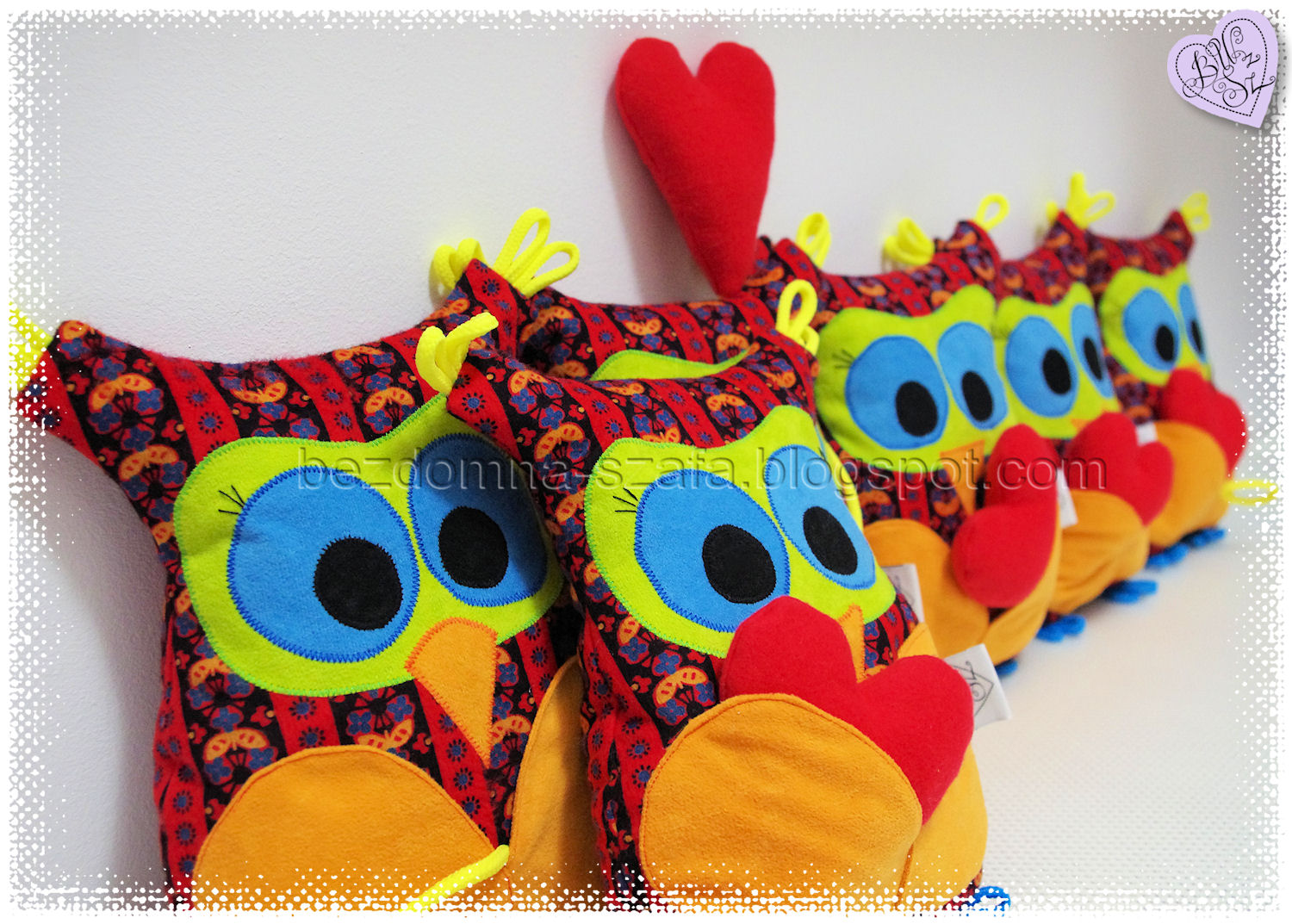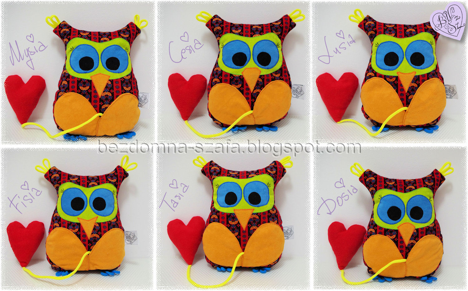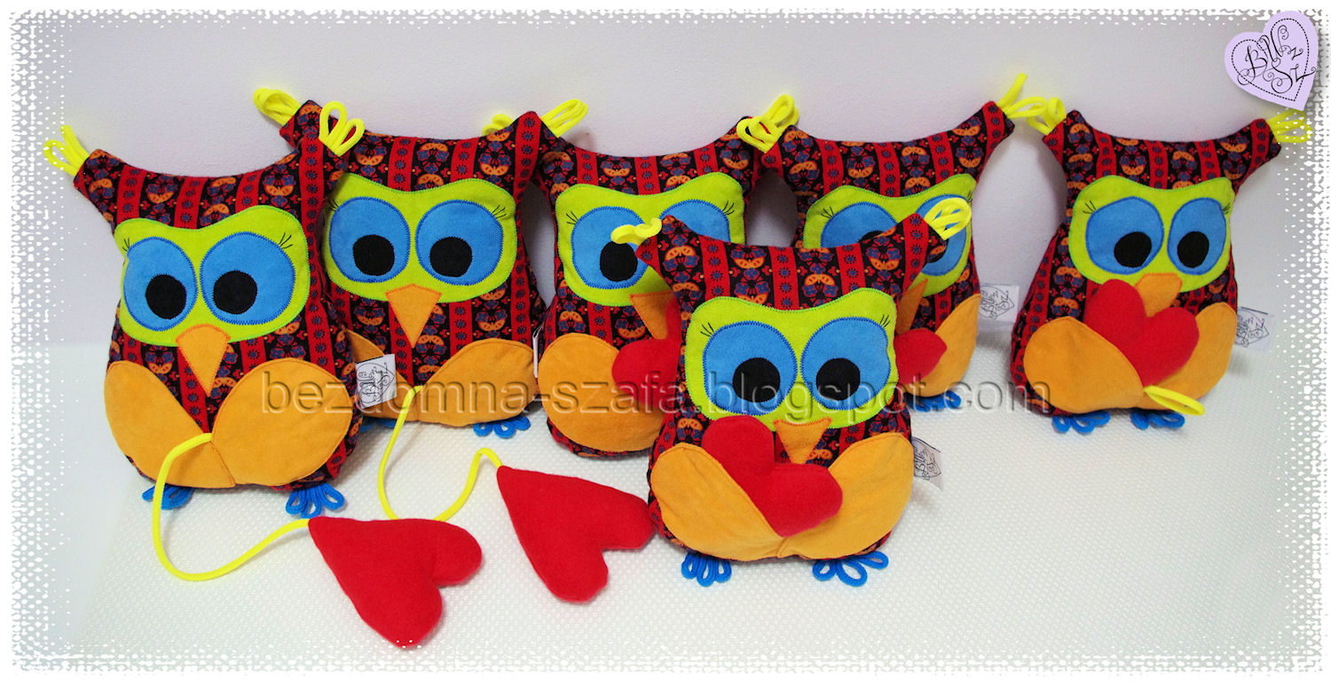 Wyszło mi 6 folkowych, bliźniaczo podobnych sówek sercówek.