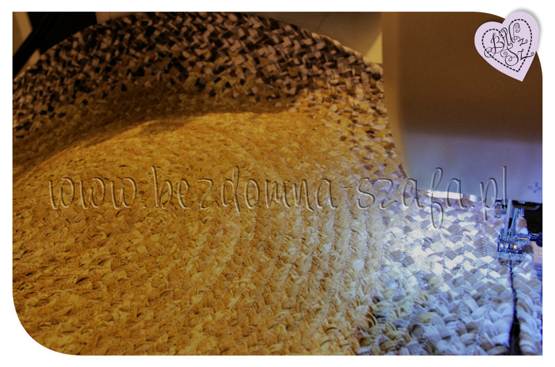 Maszyna bez problemu przeszywa taki warkocz i szyjemy jednym ciągiem bez przerwy, więc nie ma tutaj praktycznie żadnej trudności. Od czasu do czasu trzeba szpuleczkę na dole wymienić. Taki dywanik powstaje bardzo szybko, u mnie był to jeden wieczór.