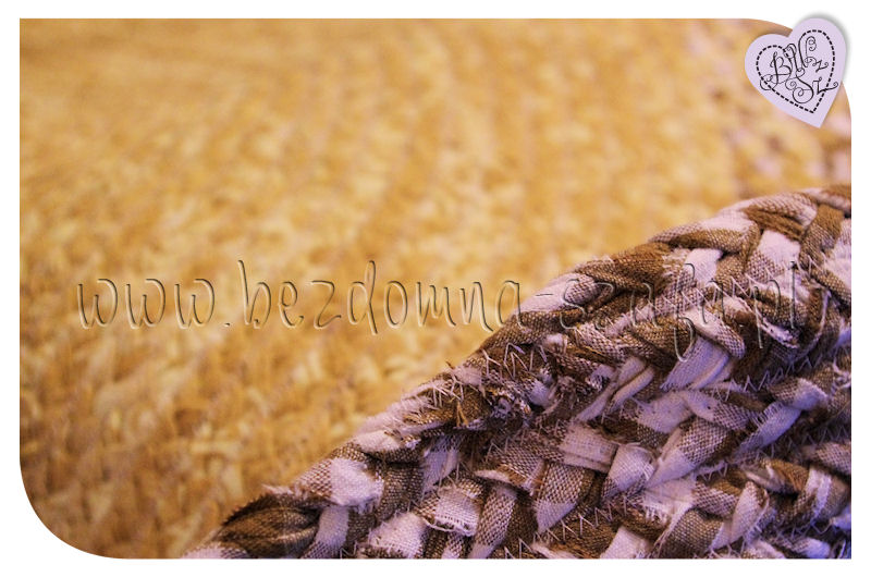 Jestem zadowolona z takiego recyklingu, bo zużyte zasłonki, poszwy, czy nieciekawe tkaniny można sobie przeznaczyć na właśnie taki dywanik, wycieraczkę, podkładkę pod gorący garnek, czy koszyk, które już nie wyglądają na zmęczone egzystencją jak przed przeróbką.