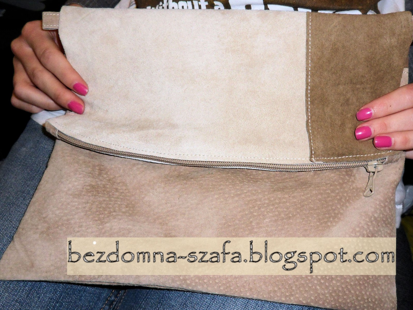 Kupiłam kiedyś okazyjnie w sh spodni zamszowych sztuk 3 + 1 kurtka, również z zamszu i tak oto mam czym szaleć. Każda sztuka kosztowała 3zł, co daje w sumie 12zł, a na torebkę wyszło po kawałku nogawki… więc tych spodni nawet za bardzo nie ubyło 🙂