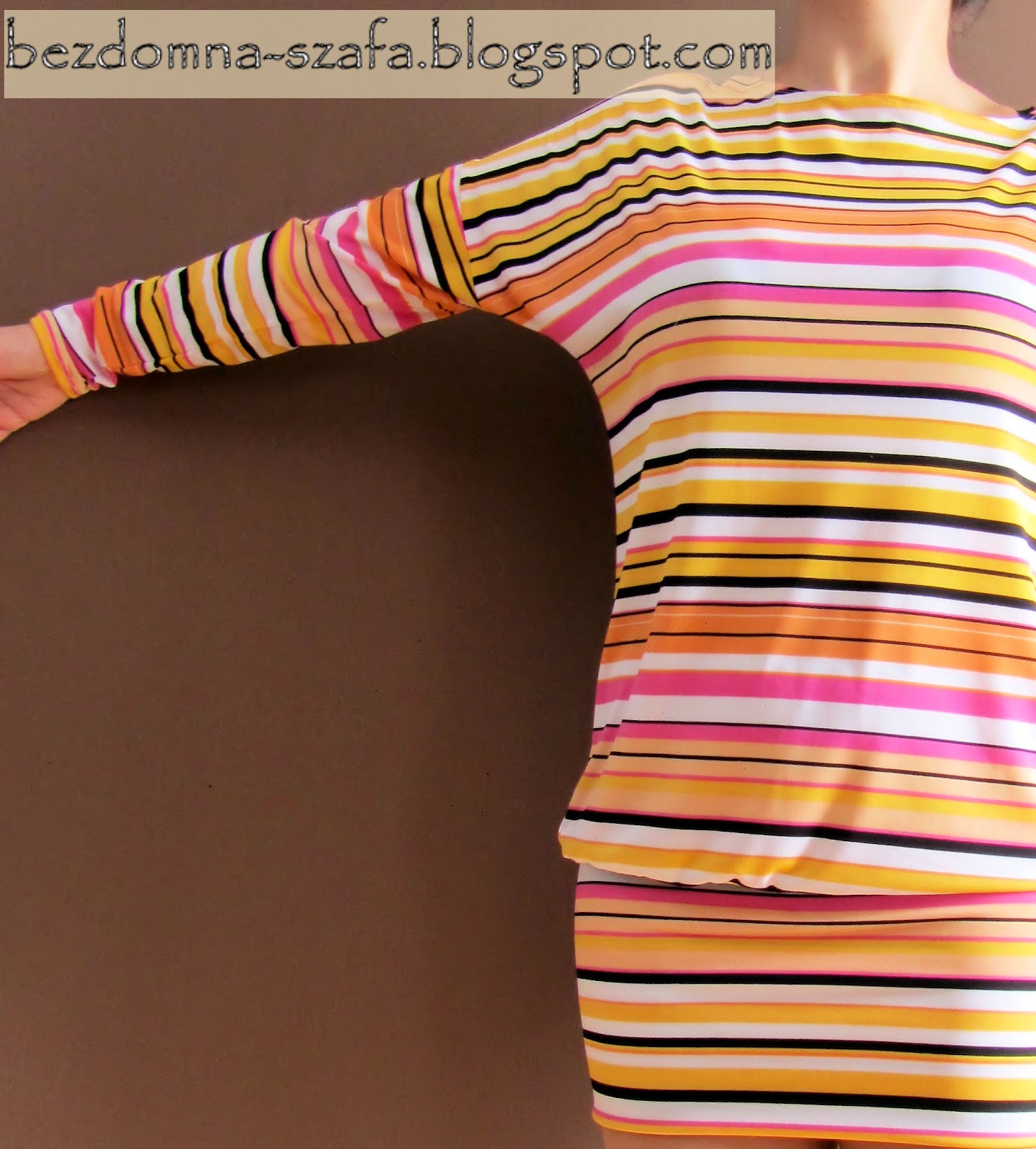 …więc zrobiłam podejście drugie… również z przecenionej dzianiny na 6zł. Może nie jest rewelacyjna, ale te kolorki takie słoneczne… na wiosnę jak znalazł 🙂